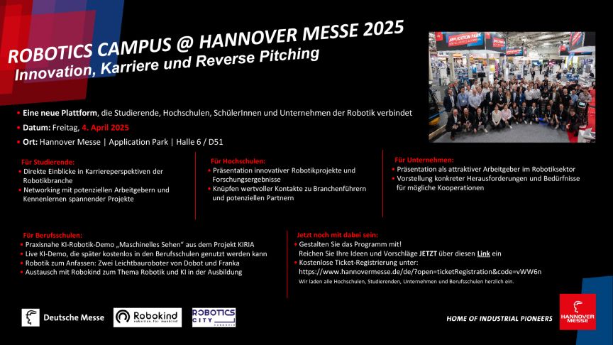 ROBOTICS CAMPUS @ HANNOVER MESSE 2025 für Hochschulen, Berufsschulen, Schulen und Unternehmen